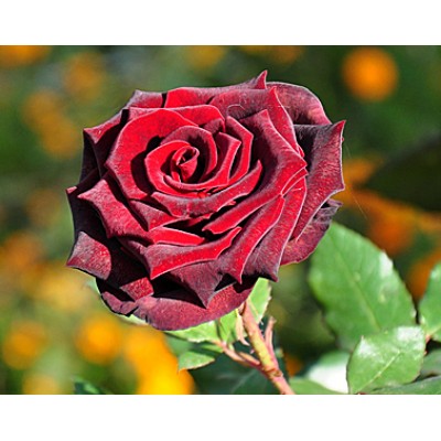 Диаметр раскрытых бутонов составляет 7-8 сантиметров. Густомахровые цветки имеют изящную бокаловидную форму, а их длинные бархатистые лепестки окрашены в темно-красный, почти черный цвет. Они могут расти как поодиночке, так и в соцветиях. Длинные побеги, на которых сидят бутончики, делают сорт идеальным для срезки, однако стоит учесть, что аромат Баркароле не особенно яркий, но очень нежный.